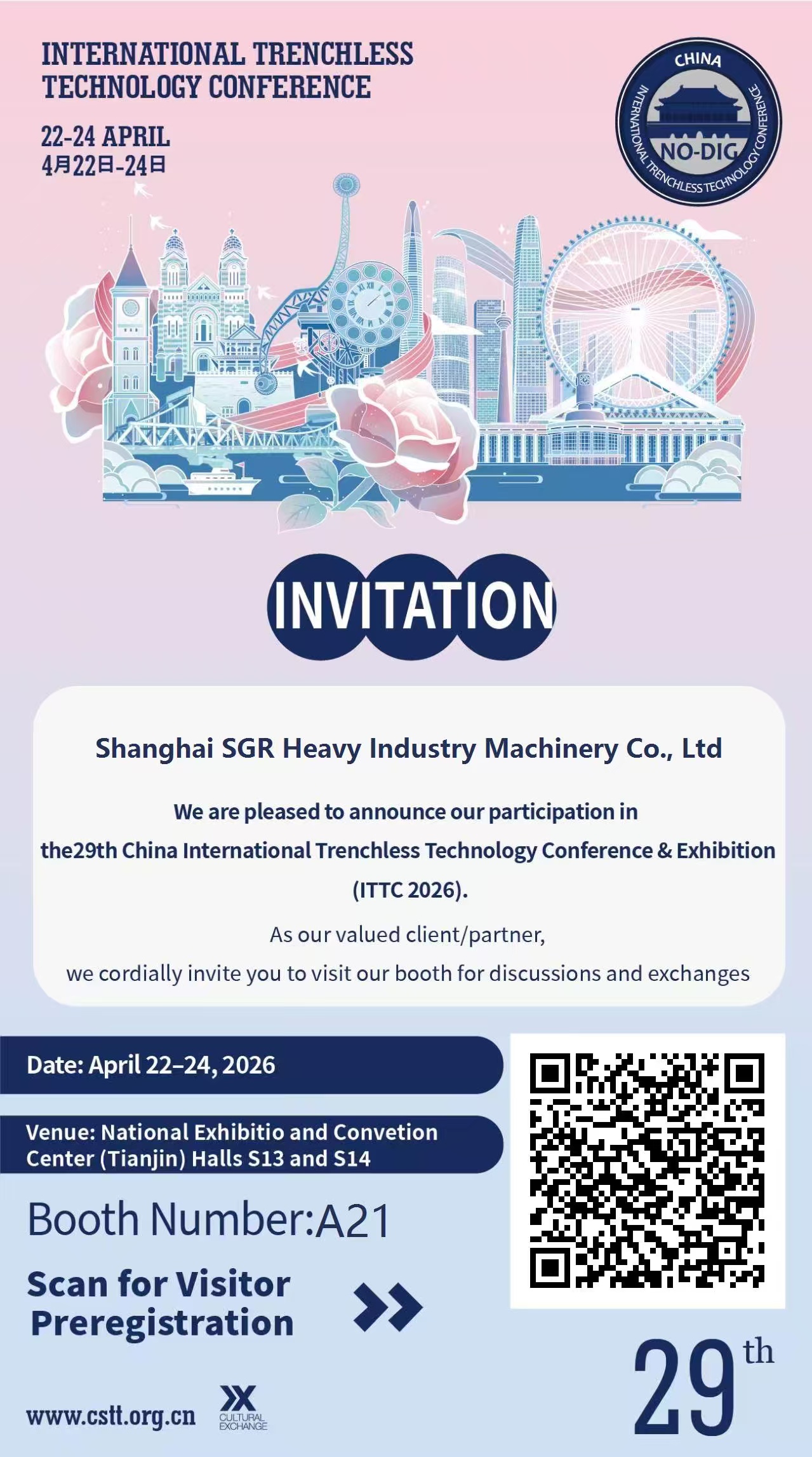 28 번째 China International Trenchless Technology Conference and Exhibition (ITTC2025)은 4 월 23 일부터 25 일까지 Suzhou International Expo Center에서 개최됩니다. 이 ITTC2025 전시회에서 SGR 산업 ...